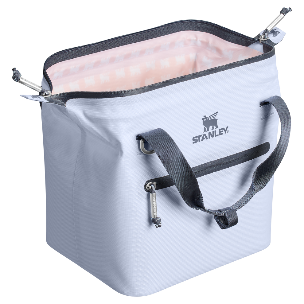 With a 10-can storage capacity, the All Day Julienne Mini Cooler keeps your goods nice and cool for 12 hours. The unique “doctor’s bag” hinge top pops open to help with unpacking. Load up with reusable ice packs, pop it shut and the sturdy zipper keeps things safely stored. The snap-top handles have a comfortable grip, while a zippered pocket protects your valuables. There’s also the option to attach the strap to sling the cooler over your shoulder. From acai bowls to charcuterie, sparkling beverages and wine are ready to be enjoyed. Don’t forget to pack all your favorite snacks and drinks in Stanley style.